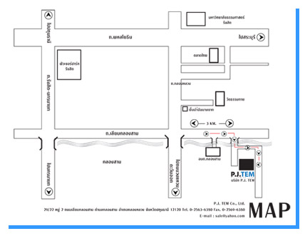 P.J. TEM Co.,Ltd. 29/22 หมู่ 2 ถนนเลียบคลองสาม ตำบลคลองสาม อำเภอคลองหลวง จังหวัดปทุมธานี 12120 โทร.0-2569-6380 แฟ็กซ์ 0-2569-6380 >> Click to Large Map (PDF File)